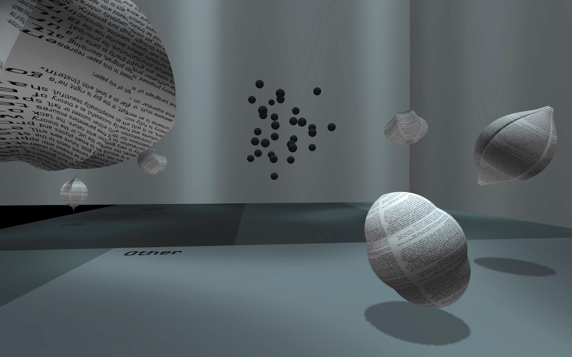 Moving beyond conventional expressions of data, I sought to represent the nature of complex online discussion threads rather than just count things and graph them. I developed an algorithm that constantly evaluated active threads and scored them according to a set of nine metrics that measured qualities such as lifecycle stage, velocity, dialogical balance, and language sophistication. I mapped these scores to Johan Gielis’ Superformula, which generated organic, “living” shapes that could be recognized by appearance and behavior as various species.This was my first experience working with the Unity game engine, and I’m still very much a fan.